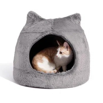 Best Friends By Sheri Meow Hut Fur Grey Plush Cave Cat Bed