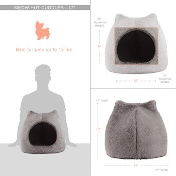 Super soft and welcoming for your precious pet and perfect for those who love to burrow, this magical Best Friends By Sheri Meow Hut Fur Grey Plush Cave Cat Bed provides 360-degree coverage! With a special shelter all their own, they can enjoy this perfect hideaway for your reserved furry friend, providing him/her with complete coverage, privacy, warmth, and comfort. Made with ultra-soft faux fur plush fabric, this luxury pet bed offers your pet cozy comfort! A perfect snuggle spot for your pet to feel warm and protected.