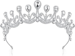 Glam up any hairstyle with this fabulous Aura In Pink Ladies Silver Royal Teardrop Rhinestone Crystal Bling Tiara! With a silver-tone base, multi-faceted shimmering clear rhinestones and beautiful clear gemstones, this breath-taking tiara is both an elegant, classy jewelry piece and statement accessory.