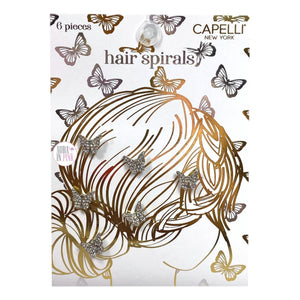 Capelli New York Silver Crystal Bling Butterfies 6-Piece Hair Spirals Set