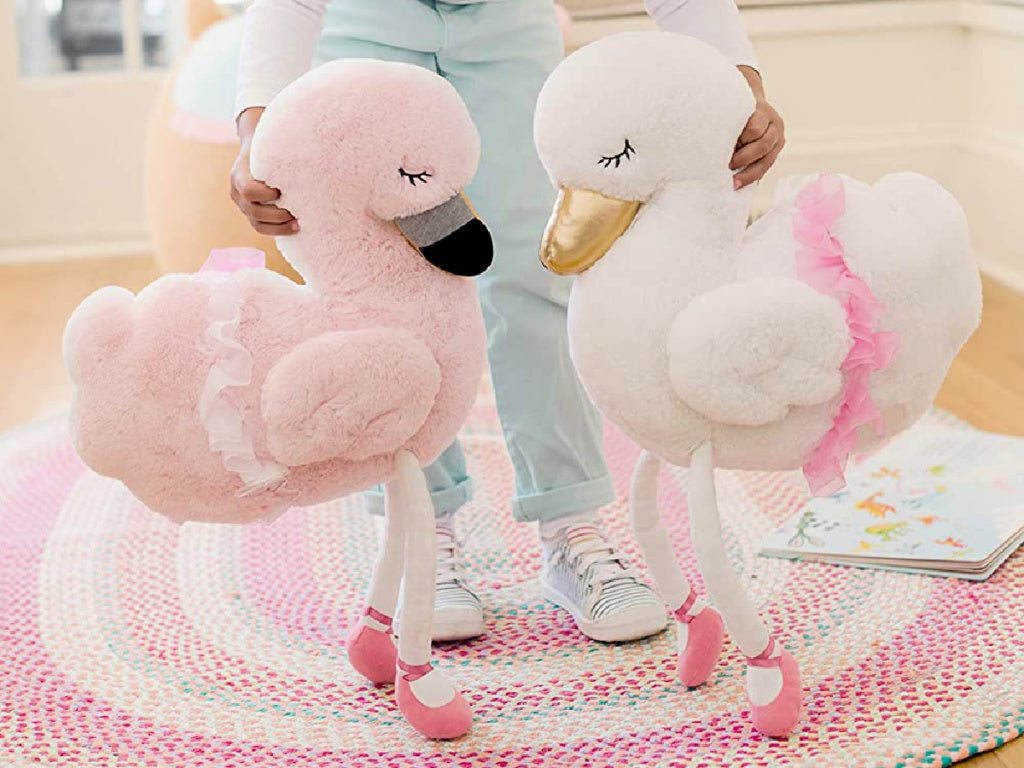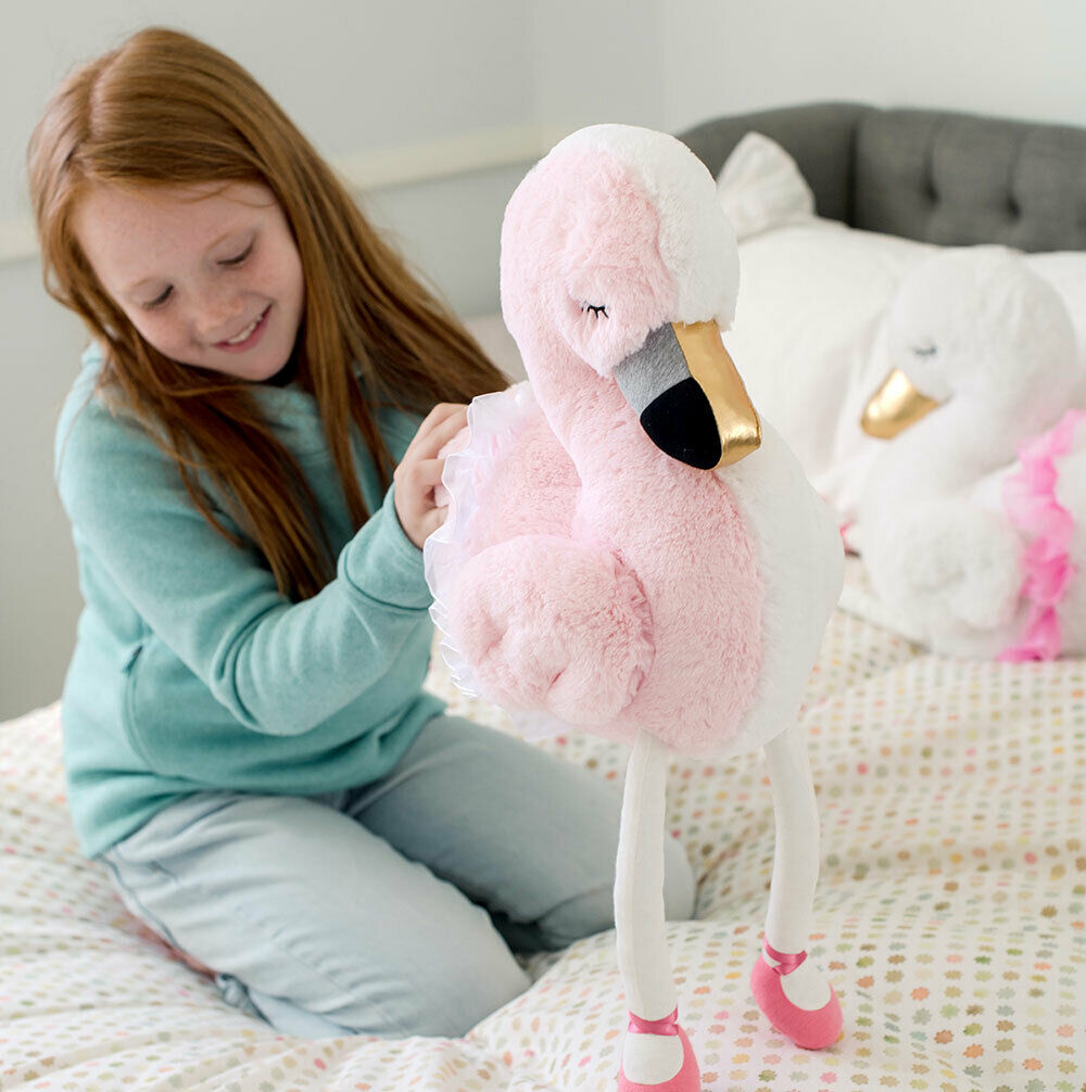 Dieses superweiche, wendbare Plüschtier „Animal Adventure Soft Landing Backflips“ aus Kunstpelz mit einem rosa Flamingo und einem weißen Schwan trägt ein fabelhaftes Organza-Tutu und hat die besten Eigenschaften aus beiden Welten: einen wunderschönen, weichen rosa Flamingo auf der einen Seite und einen wunderschönen weißen Schwan auf der anderen!
