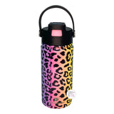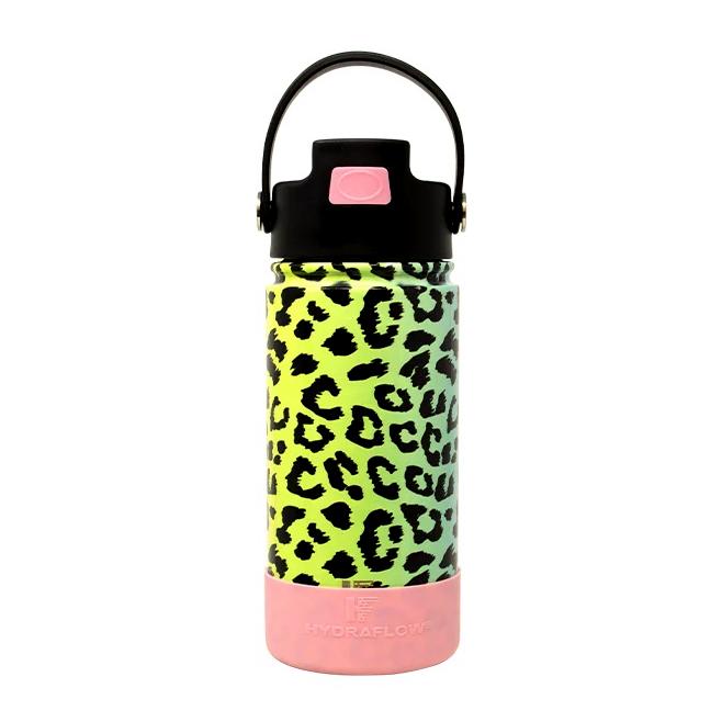 Hydraflow Hybrid Pastel Rainbow Cheetah Print Stainless Steel Triple Wall Vacuum Flip Top Bottle w/Handle & Silicone Boot