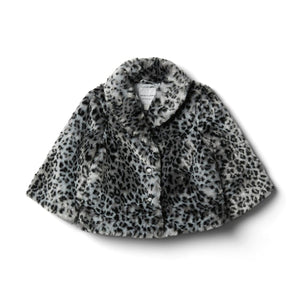 Janie And Jack Girls' Snow Leopard Print Faux Fur Plush Coat