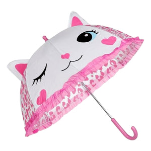 Laura Ashley Girls White & Pink Leopard Print 3D Ears Winking Cat Umbrella