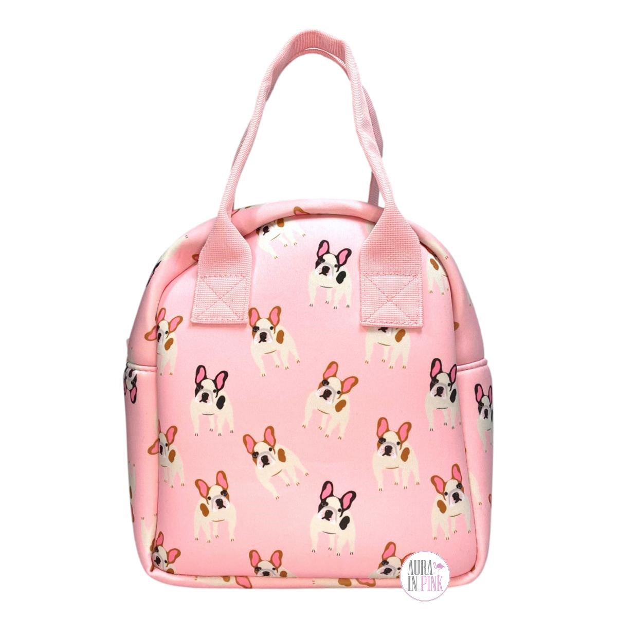 Mytagalongs Frenchie French Bulldogs Pink Neoprene Insulated Lunch Tote Bag