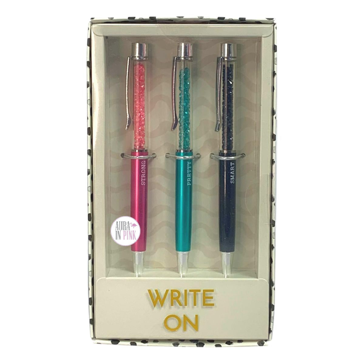 Votum Strong Pretty Smart Inspirational Crystal Bling Write On 3-Piece Ballpoint Pen Set