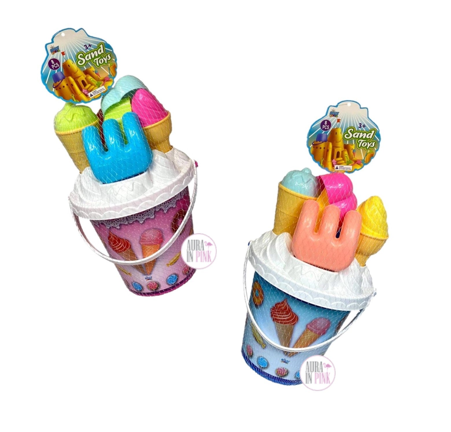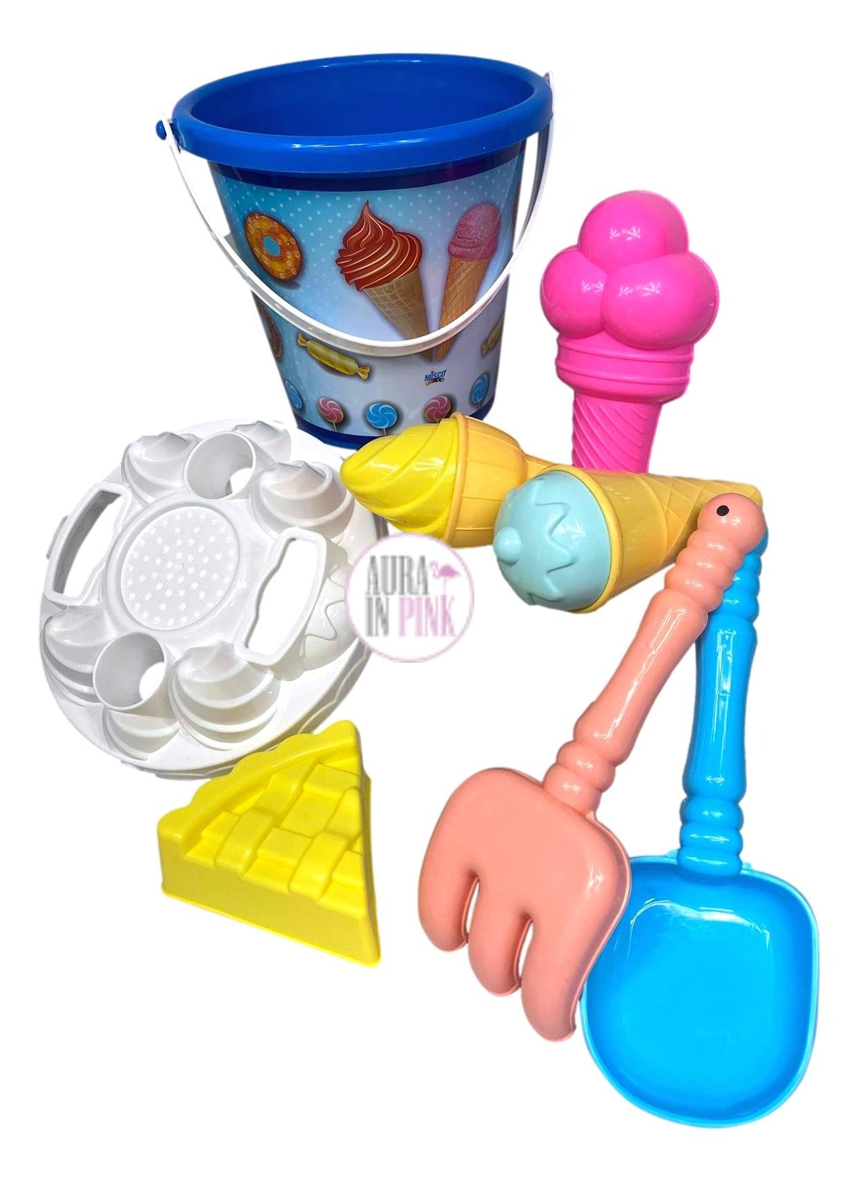 8-Piece Ice Cream Sweet Treats Sand Toys Beach Pail Bucket Set - Pink & Blue
