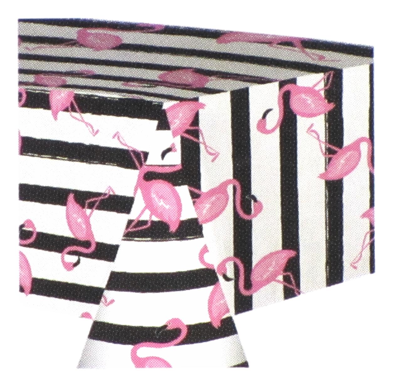 Add a touch of flamingo flare to your table with this fabulous Pink Flamingo Black & White Striped Flannel-Backed Table Cloth. Great for parties or just for adding a pop of color to your table! It's easy to clean waterproof surface wipes up in seconds!