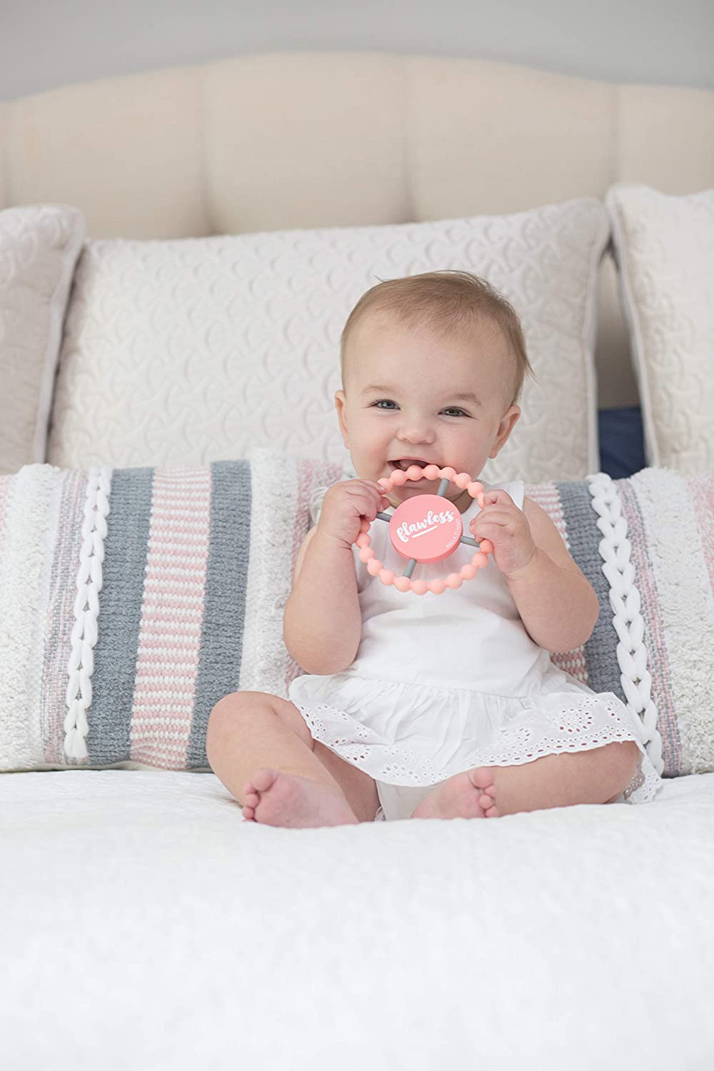 This fabulous Bella Tunno Pink Flawless Baby Happy Teether Silicone Teething Ring was designed to soothe sore gums and provide sensory stimulation. Bella Tunno's baby teething toys feature fun colors that are attractive to your baby’s eyes, and are the perfect fit for small hands as it is round providing an easy grip from any angle.