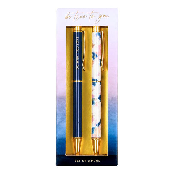 Eccolo & Two If By Sea Inspirational Do What You Love Gold Navy Blue Pink Marbled Pen Set of 2