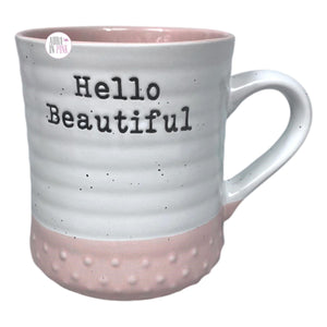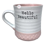 Heartland Hive Debossed Hello Beautiful Ivory & Pink Ceramic Coffee Mug