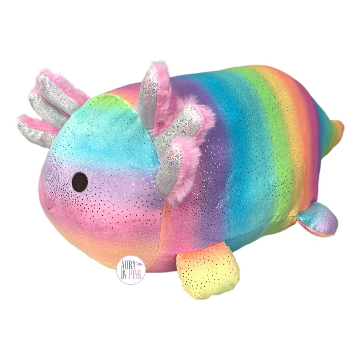 Linzy Toys Smoochy Pals Super Soft Plush Large Silver Speckled Pastel Rainbow Axolotl