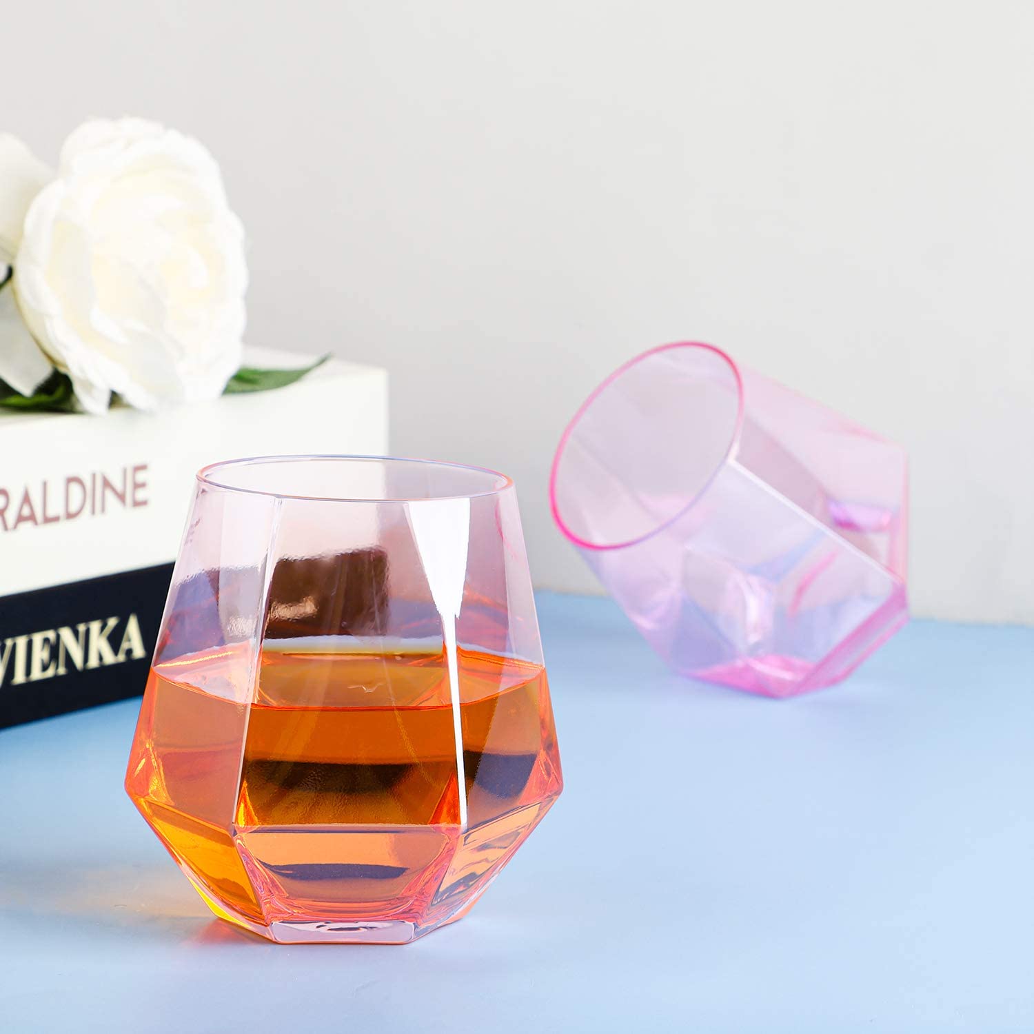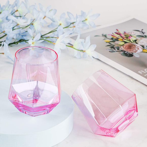 This absolutely gorgeous Luxe Habitat Pink Diamond Old Fashioned Rock Glasses Set Of 2 is a fabulous addition to any kitchen! They are uniquely designed glasses in the shape of diamonds that are sure to be conversation pieces for any hostess!