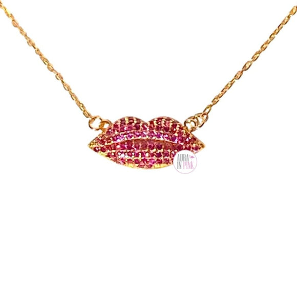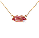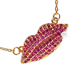 Sterling Silver Gold Plated Rachel Zoe Dark Pink Lips CZ Pendant Necklace